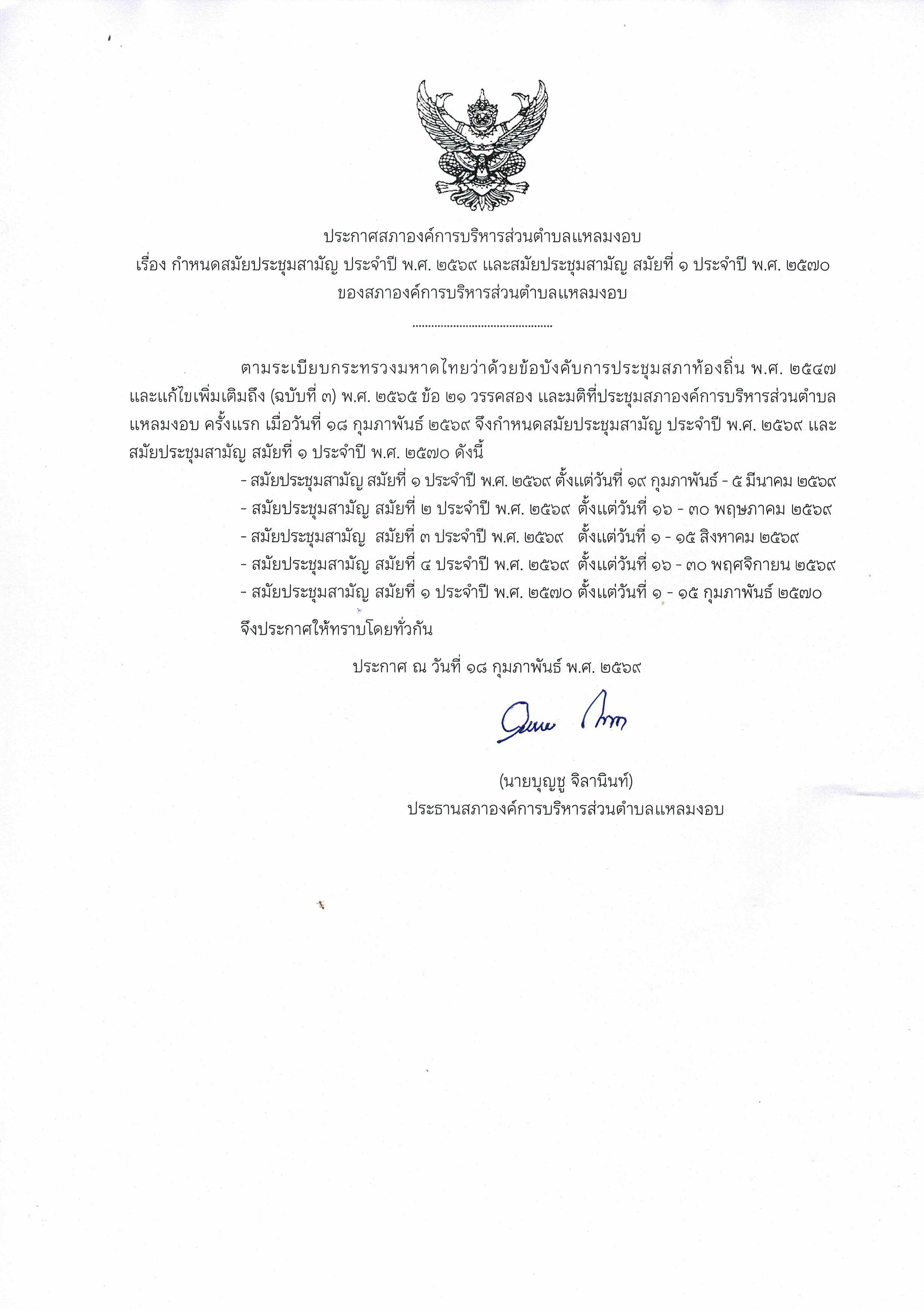 ประกาศสภาองค์การบริหารส่วนตำบลแหลมงอบ เรื่อง กำหนดสมัยประชุมสามัญ ประจำปี พ.ศ. 2566 และสมัยประชุมสามัญ สมัยที่ 1 ประจำปี พ.ศ. 2567 ขององค์การบริหารส่วนตำบลแหลมงอบ 13/02/2566