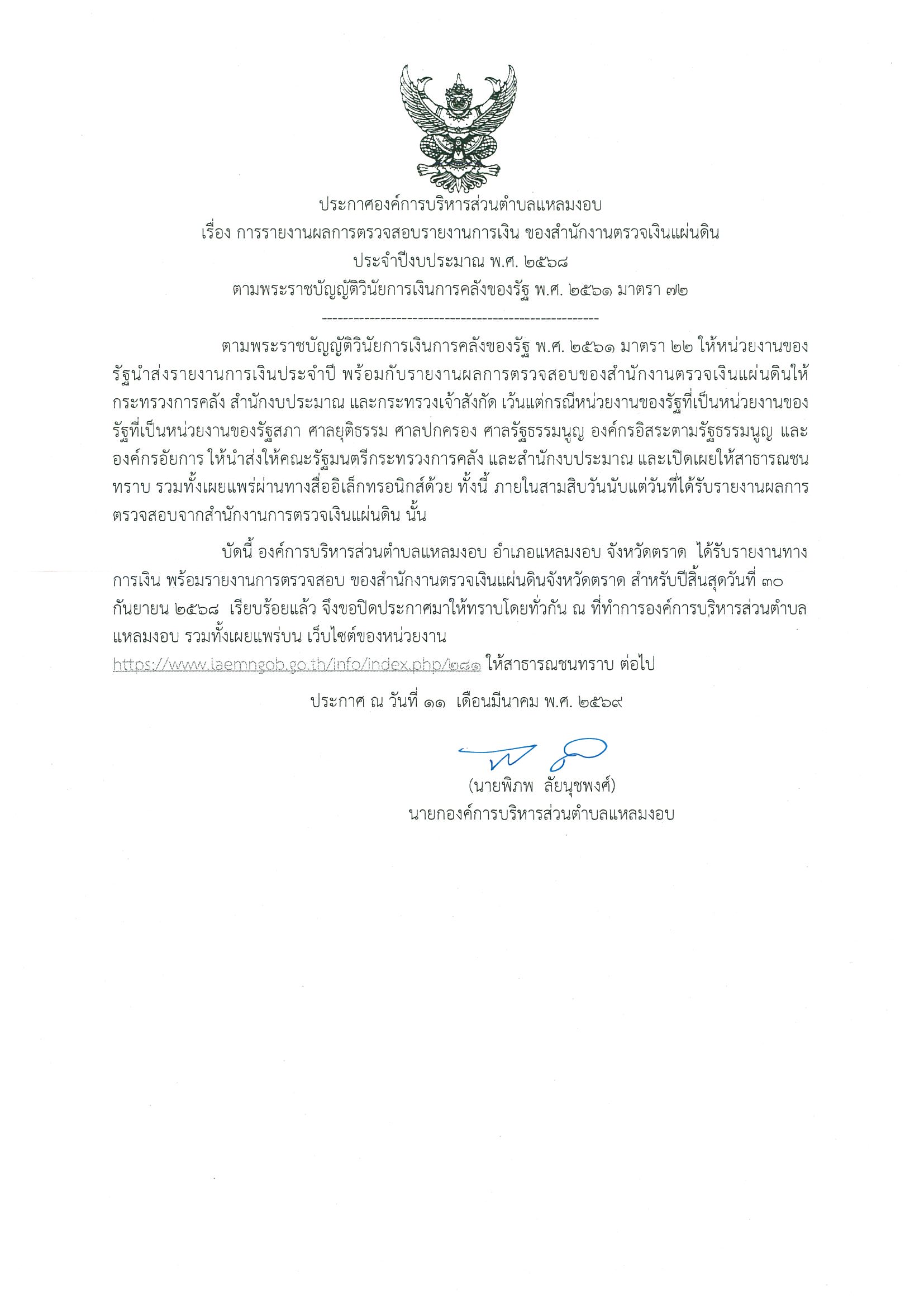 ประกาศอื่น ๆ ของ อบต.แหลมงอบ